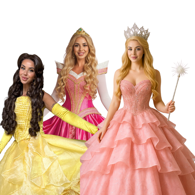 Whichever princess you invite to your event, you can rest assured she will arrive in the best quality dresses, accessories and wigs which are handmade in house! We take pride in bringing each character to life with the highest standard of authenticity.