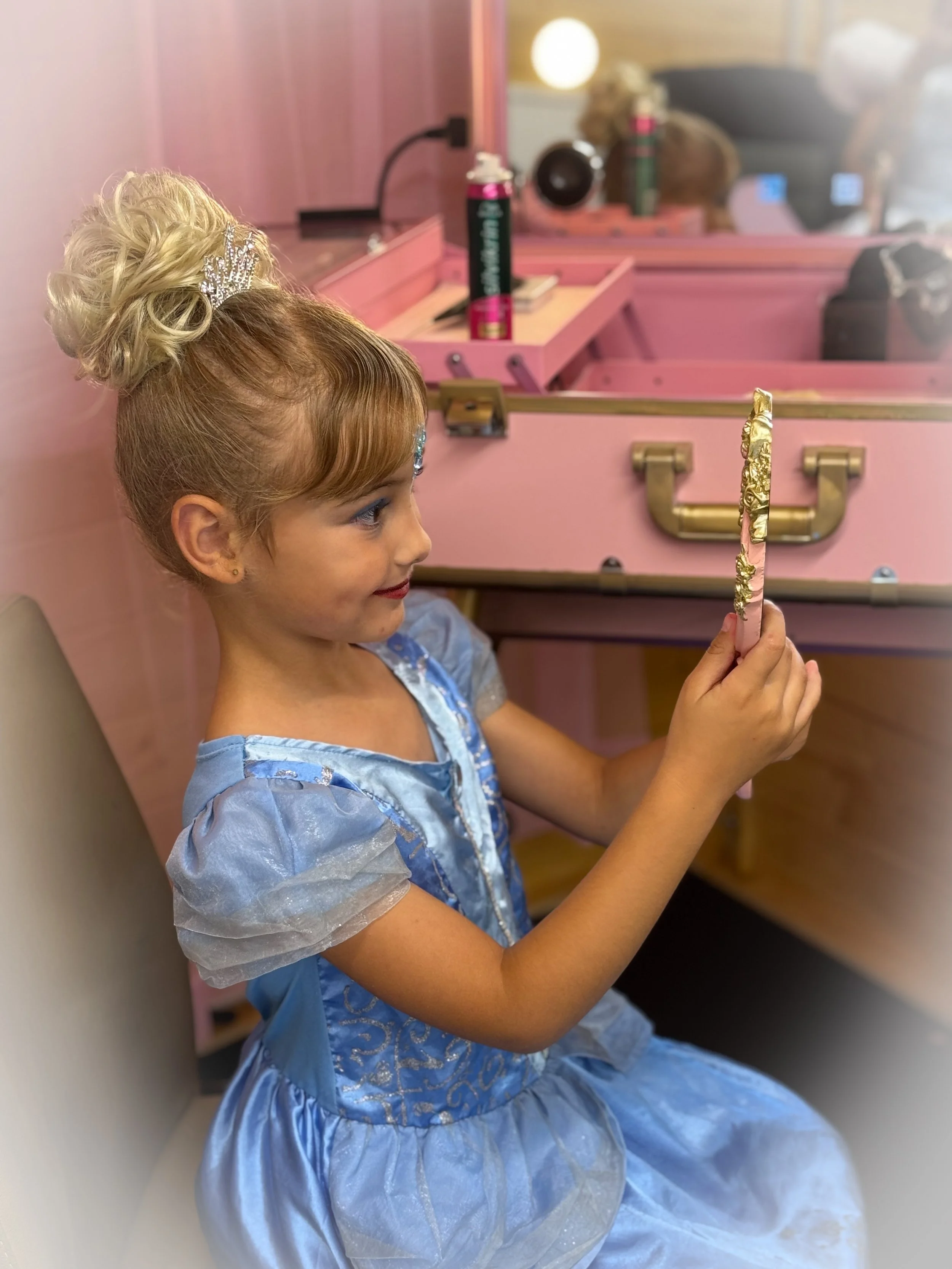 A fairytale experience like no other. Itβs time to Bippity Boppity Boo you into a real-life princess with a wave of a wand and a sprinkle of pixie dust. Guided by your chosen princess host, little ones are treated to royal invitations, sparkling makeovers with hair, nails and glittering gems, enchanting photo moments, and a special gift to treasure long after their magical mirror reveal.