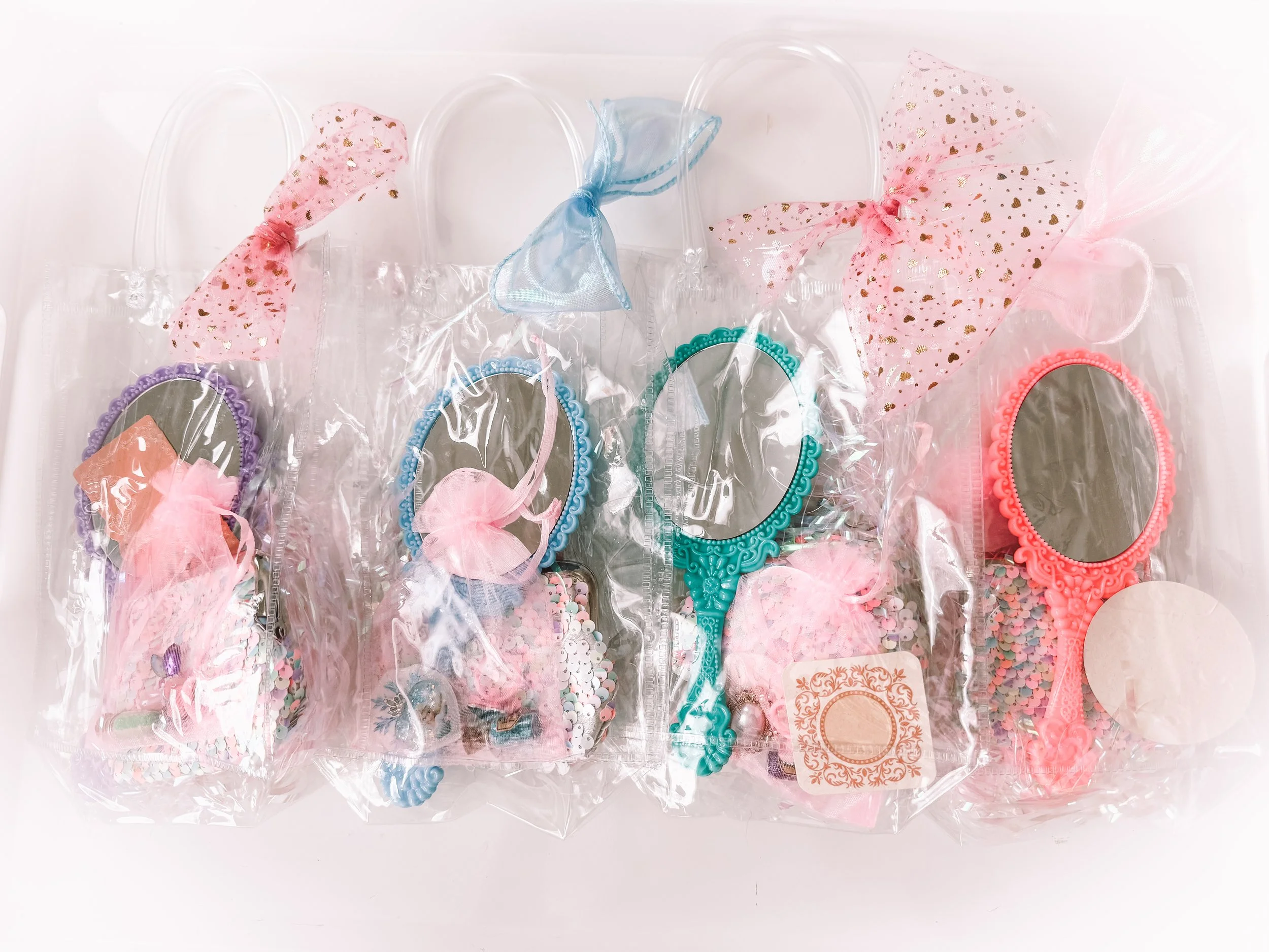 Mum to mum, planning a party can be stressful and time consuming, you want your little one to have the best day so let us help you tick another box. We hand make each party bag bespoke to your events theme. Each bag is filled with unique goodies inside. Your princess host will bring the party bags on your party day.